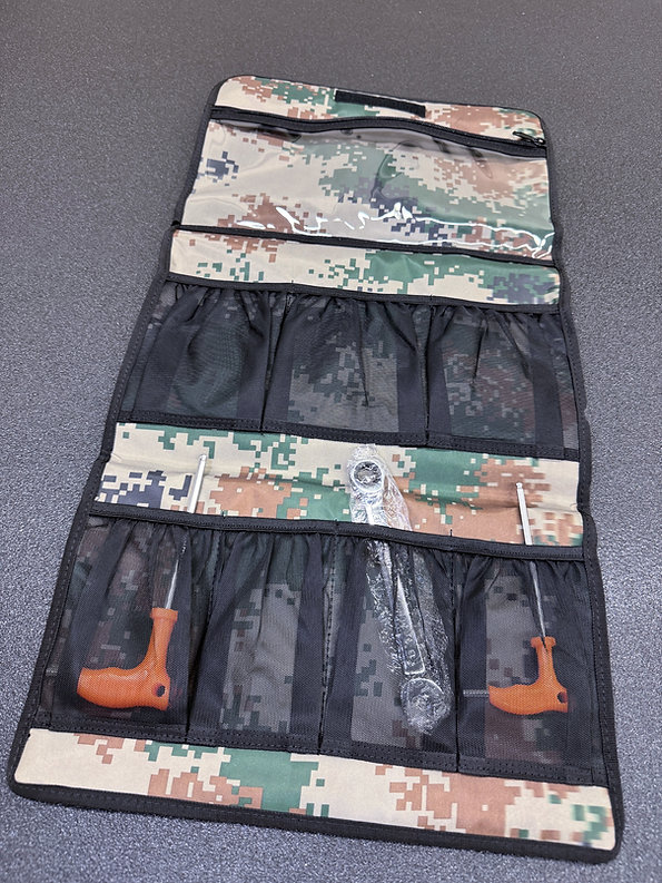 Parts bag for your camper. Great way to carry all the tools that you need when you are on the road. Includes 2 allen keys and a 13mm ratchet wrench to ensure that bolts and clamps are secure.